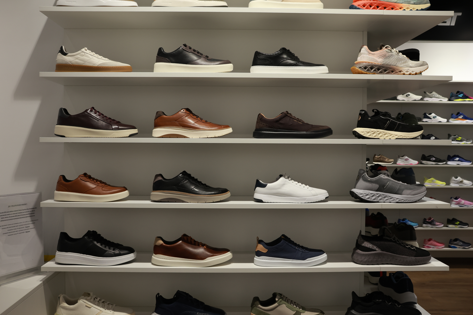 Також в магазині представлений бренд Cole Haan. Це історія стилю та інновацій, захоплююча подорож у світ моди та комфорту. З більш ніж 95-річною історією, ця торгова марка стала невід'ємною частиною життя тих, хто цінує унікальний союз стильних образів та неймовірного комфорту.
